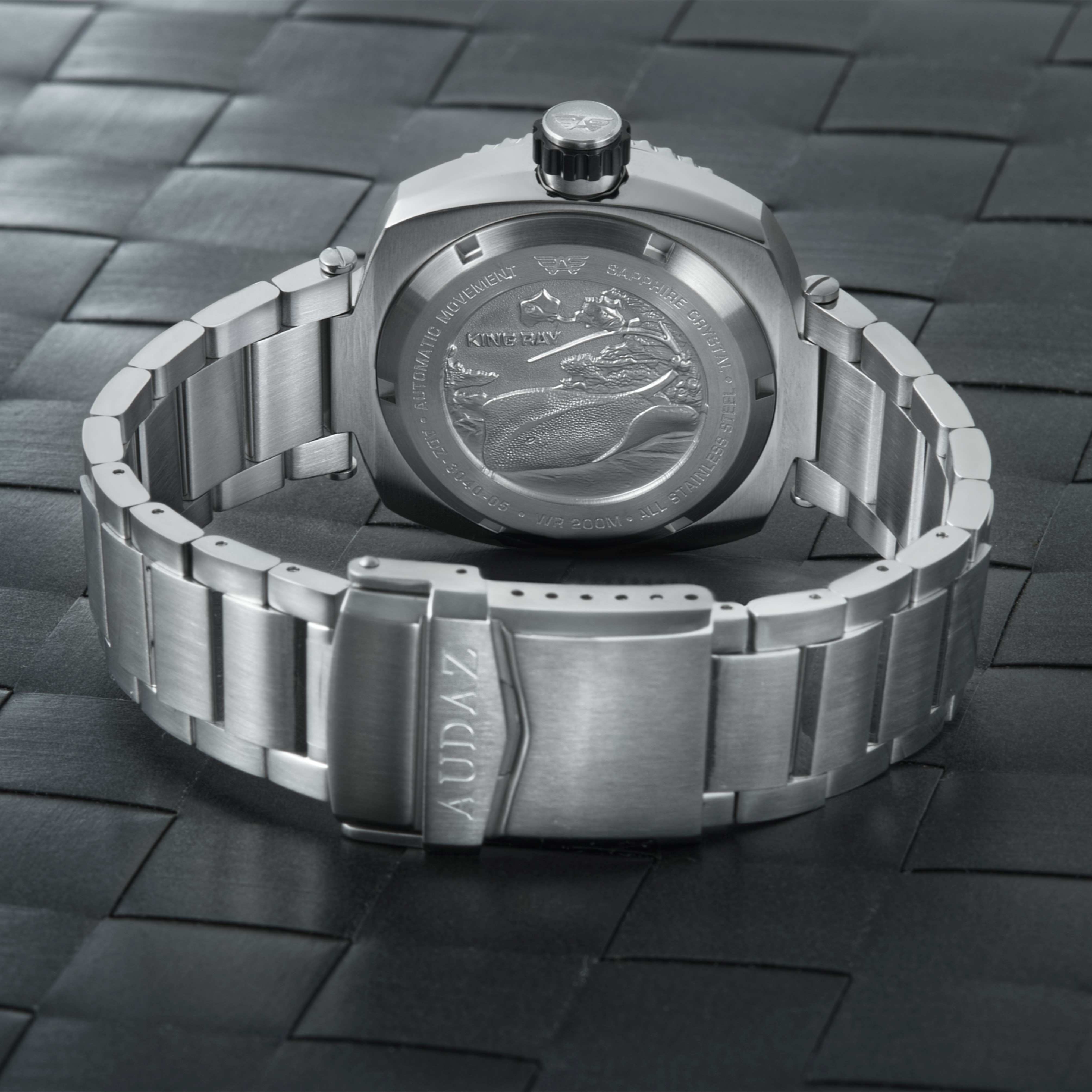 The King Ray Collection is inspired from the Manta Rays, one of the most beautiful creations of marine world. Crafted with a combination of premium quality, robust capabilities and practical functions for everyday adventures of life, The King Ray embodies our Bold DNA and manifests into a Sporty-Sophisticated Dive Watch. Constructed from 316L Stainless Steel, the 42mm cushion case extends upto 48m in length making it a pleasant piece to wear all day comfortably. The robust case is supported with a elegant three link, brushed, polished stainless steel bracelet. King Ray watches are designed to be elegant and functional at the same time, the clutter free details and the generous use of Super-LumiNova on the diamond cut hands and applied indices, reinforce the legibility even in low light conditions. The dials come in Sunray finish that blends perfectly with polished hands and indices, or with an excellent Matt finish on dials, hands and indices. The minute chapter ring and polished date frame compliment the dials elegance. Powerful design needs to backed by functionality, King Ray Watches are built to take upto 200m of atmospheric pressure underwater, the watch also features aesthetically pleasing Manta Ray motif embossed on the Solid Screw-in caseback. King Ray dive watches are powered by 24-Jewel, well-engineered TMI-NH35 Automatic movements that are also popularly known as the workhorse automatic movement. The unidirectional bezel features a stainless-steel insert with raised polished graduations and numerals, standing out against the matt background adding to its functionality.