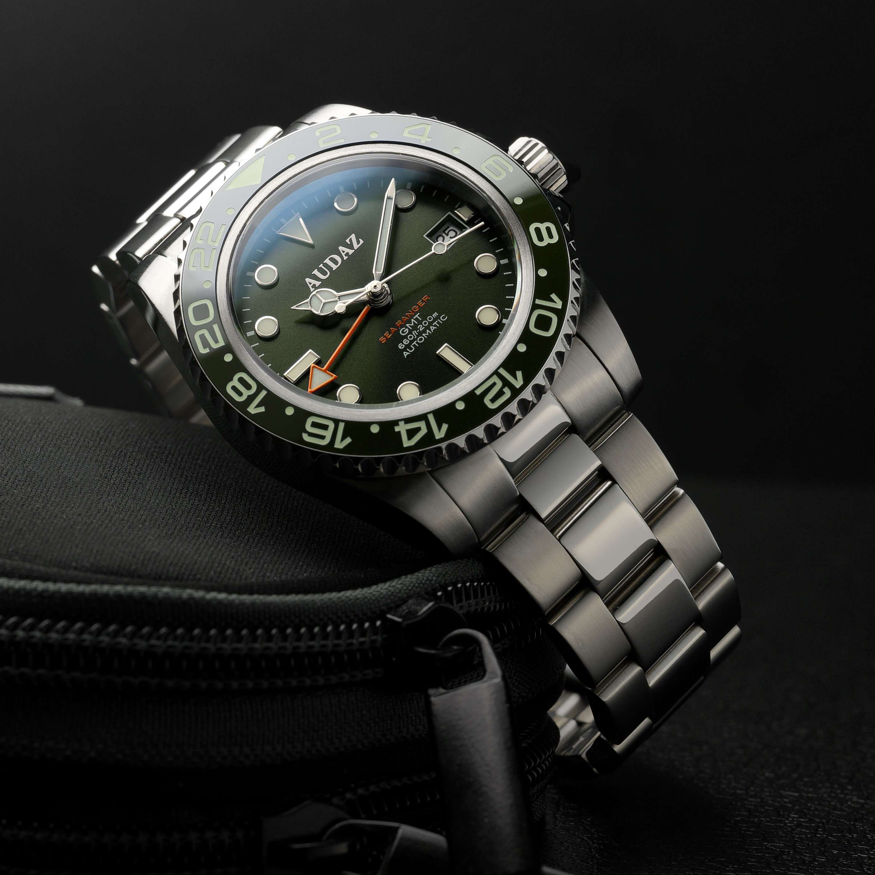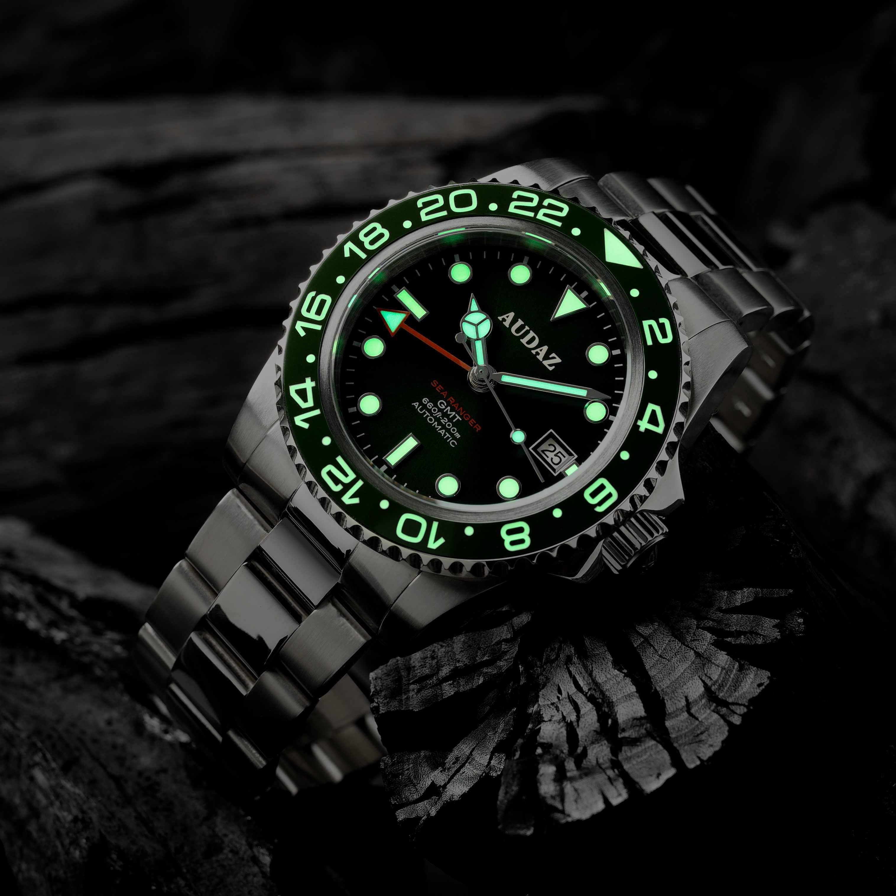 The Sea Ranger GMT is the ultimate companion for the modern globetrotter. Designed with the jetsetter in mind, this timepiece features an additional hand on the dial that tracks a second time zone while maintaining precise time of the current location. Expertly crafted from 316L Stainless Steel, the 42mm case extends up to 50mm in length and 14.50mm in height, ensuring a comfortable fit throughout the day. The ergonomically designed case showcases an elegant combination of mirror and brushed polish, complemented by a robust three-piece link bracelet. Legibility is crucial for a dive watch, and the Sea Ranger GMT embraces the essence of diving and travel with its design philosophy. The generous use of Swiss Super-Luminova on the indices and hands ensures exceptional legibility in low-light conditions, enabling travelers to effortlessly keep track of time, whether they are exploring the depths of the ocean or crossing multiple time zones around the world. The Sea Ranger GMT showcases its 24-jeweled TMI NH34 Automatic movement through an exhibition caseback. Operating at a frequency of 21,600 beats per hour (BPH), this movement offers precise timekeeping and reliable performance. With a power reserve of 41 hours, the Sea Ranger GMT ensures consistent operation even during extended periods without winding. Combining versatility, top quality, and functionality, the Sea Ranger GMT is an exceptional timepiece that strikes the perfect balance between style and performance.