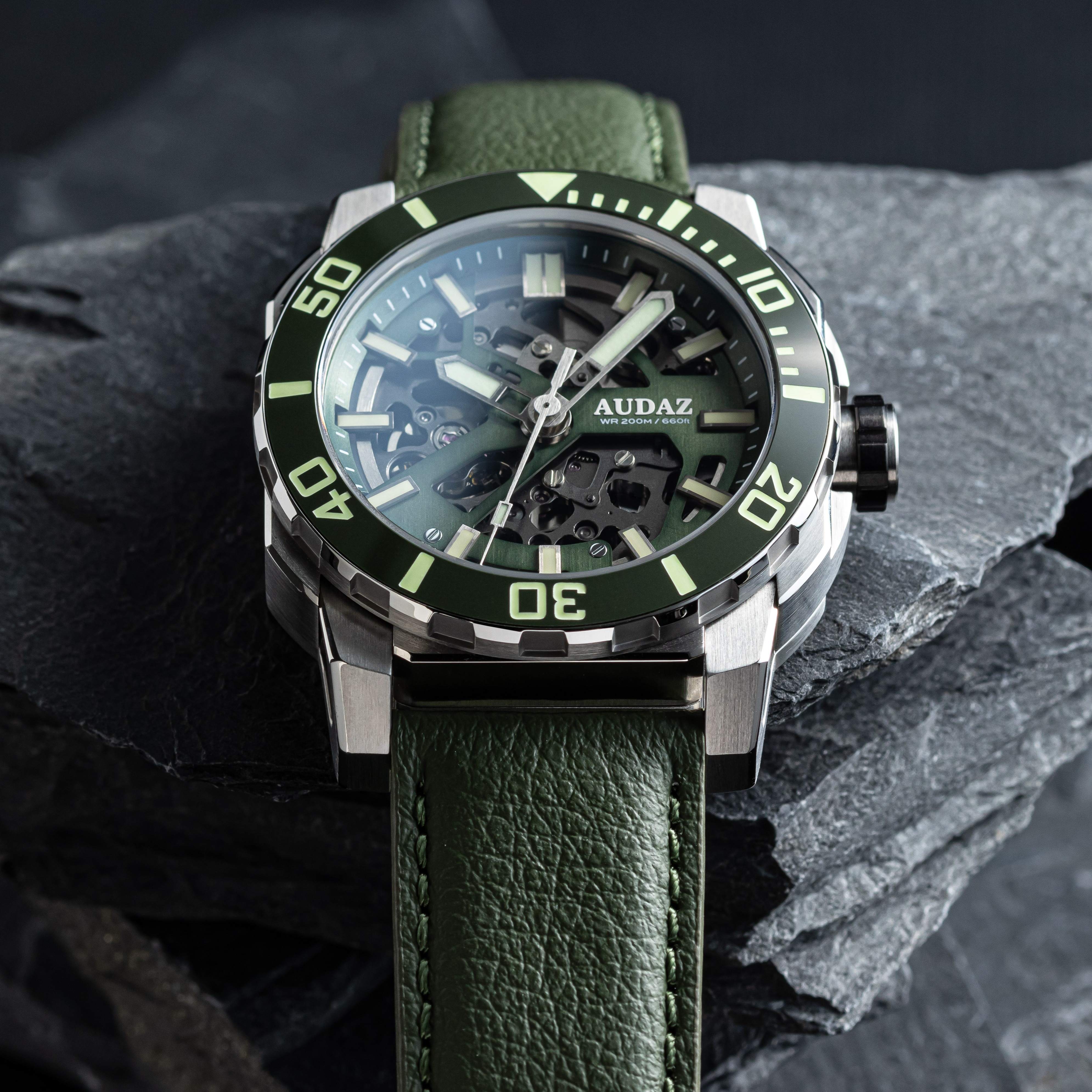 With an exceptional track record and an unwavering passion for watchmaking, AUDAZ Watches loves to push boundaries and explore innovative designs. AUDAZ Watches proudly presents the Quantum collection, a testament to the brand's bold and adventurous spirit. Drawing inspiration from urban landscapes, the Quantum collection fuses style and sophistication with premium quality for the modern gentry. The Quantum watch features a multi-component case design with a sandwich-type construction that embraces angular and curved facets of the case. It showcases modern open-worked lugs, enhanced by a satin brush finish and refined polished edges. The skeletonized dial displays intricate movement mechanisms, adding an avant-garde touch and highlighting its streamlined industrial aesthetics. The Quantum watch epitomizes AUDAZ Watches' core values: Quality, Functionality, and Style. It is a rugged tool watch, featuring Sapphire crystal for scratch protection, a crisp 120' click unidirectional bezel with a high-quality ceramic insert, and generous use of optimum glowing C3 grade Swiss Super LumiNova on the hands, indices, and markers. The watch also incorporates Lorica straps, made from thin microfibers that provide excellent water resistance, softness, and durability. Built to survive upto 200m of atmospheric pressure under water, the Quantum watches are powered by the reliable TMI-NH72 Skeletonized Automatic movement.