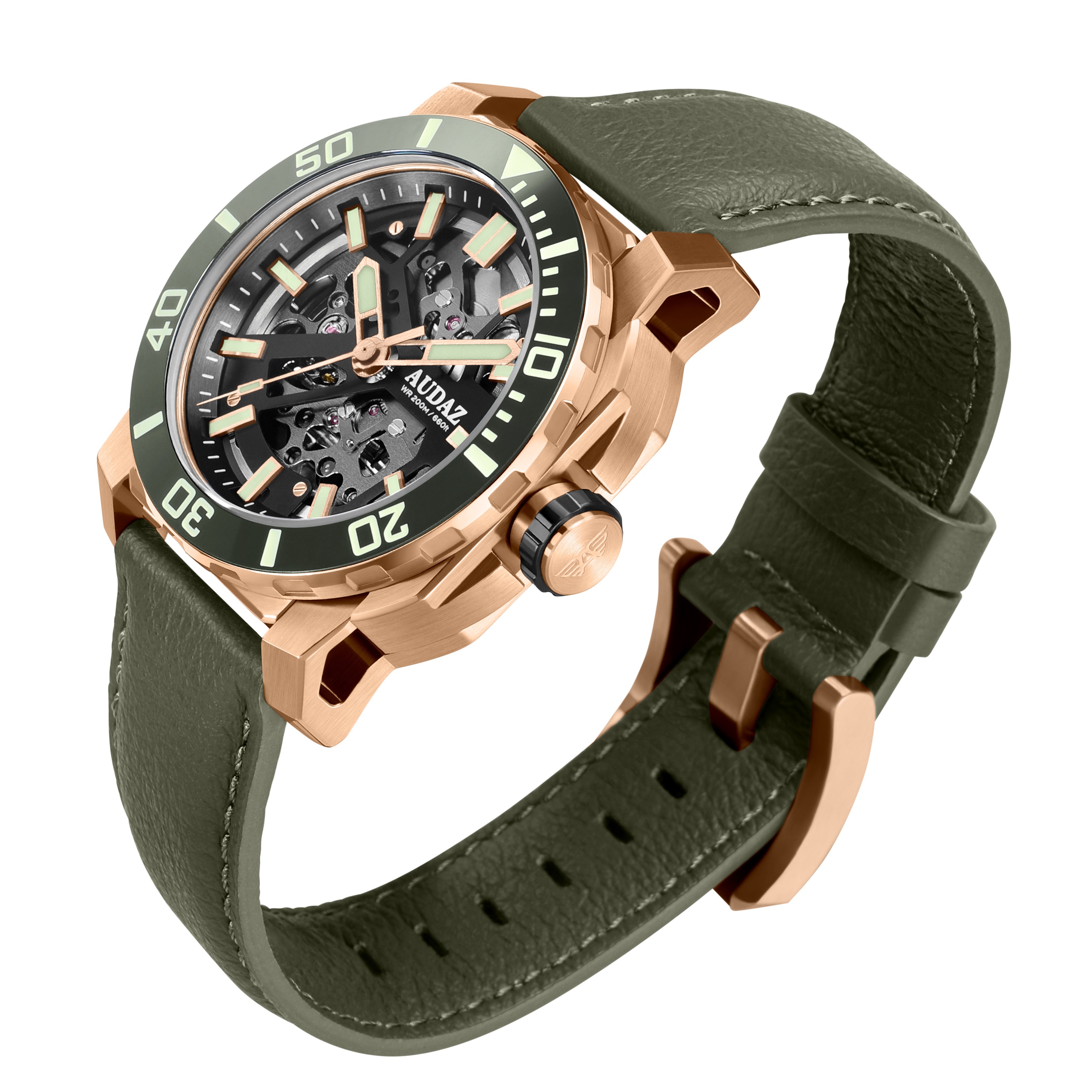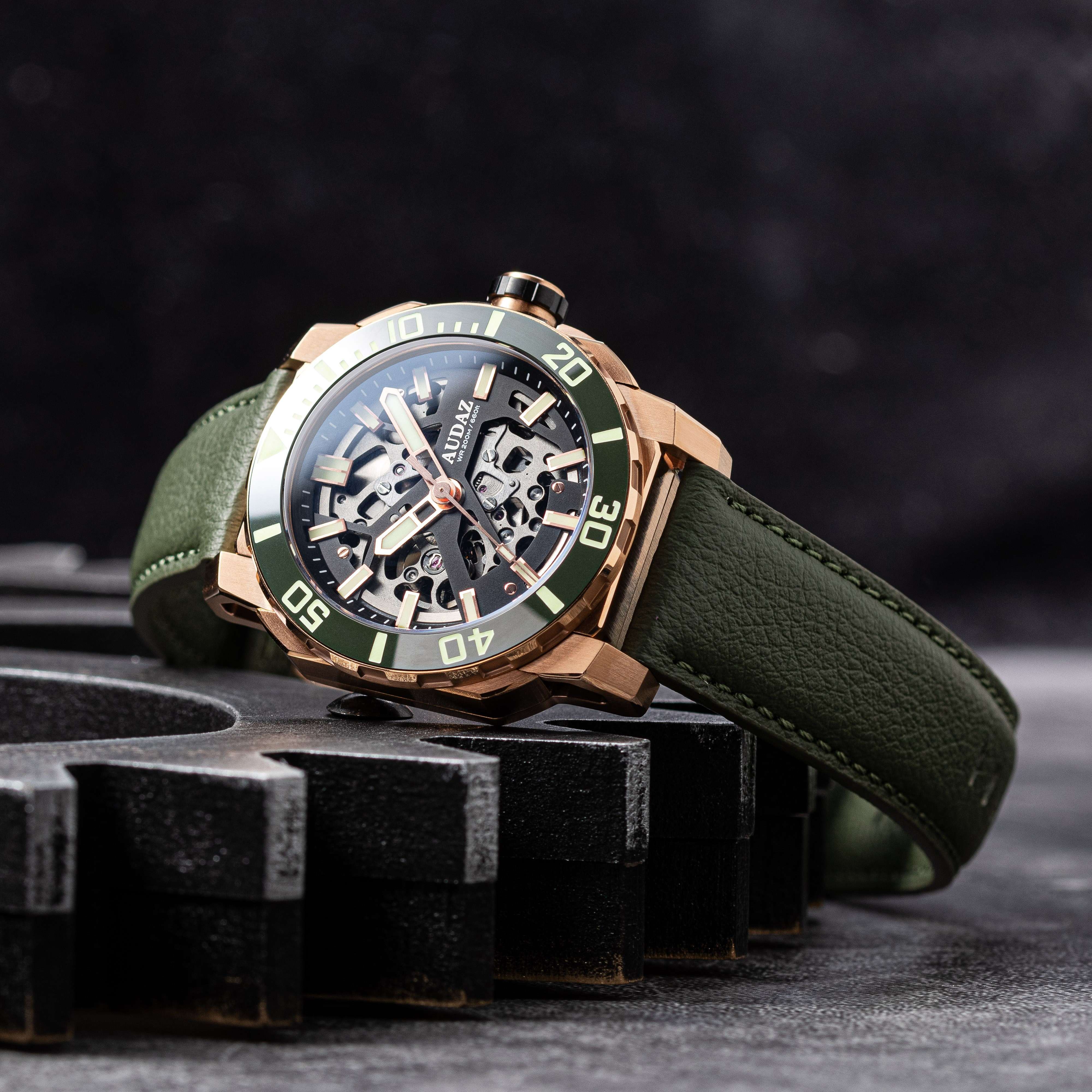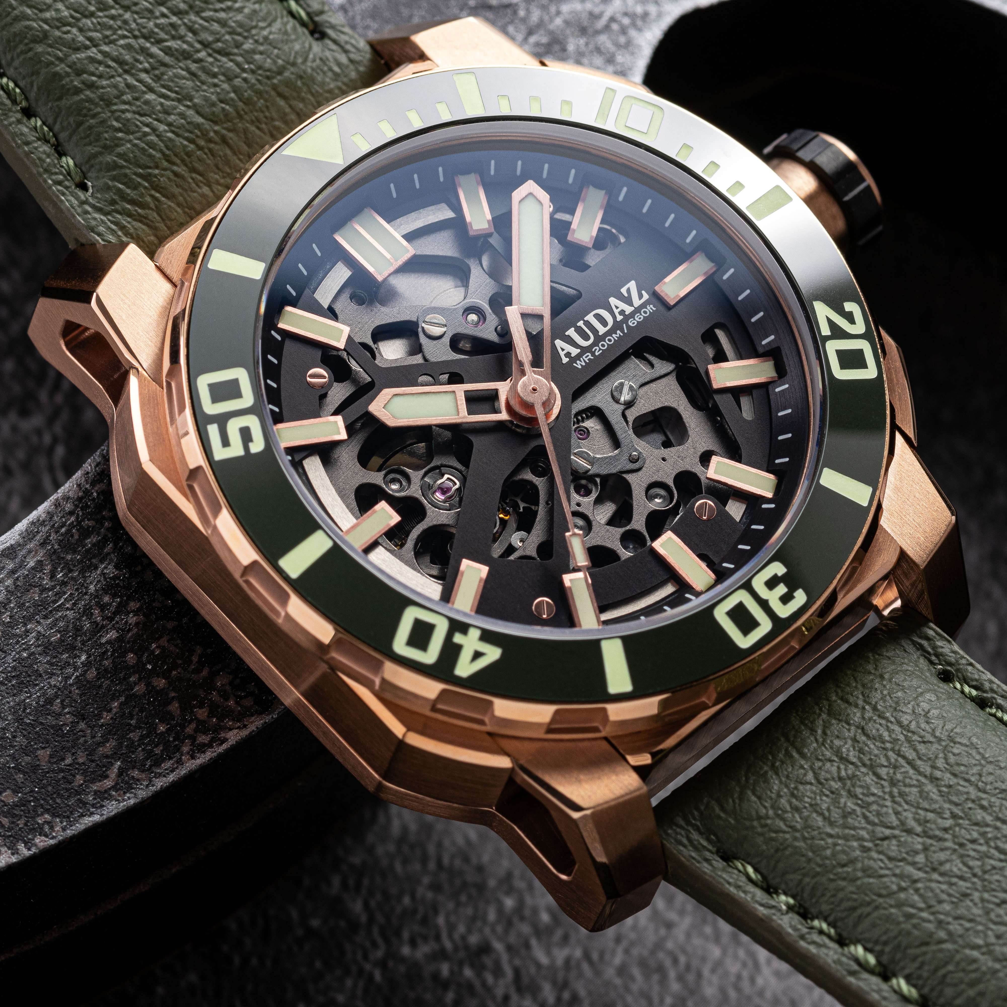 With an exceptional track record and an unwavering passion for watchmaking, AUDAZ Watches loves to push boundaries and explore innovative designs. AUDAZ Watches proudly presents the Quantum collection, a testament to the brand's bold and adventurous spirit. Drawing inspiration from urban landscapes, the Quantum collection fuses style and sophistication with premium quality for the modern gentry. The Quantum watch features a multi-component case design with a sandwich-type construction that embraces angular and curved facets of the case. It showcases modern open-worked lugs, enhanced by a satin brush finish and refined polished edges. The skeletonized dial displays intricate movement mechanisms, adding an avant-garde touch and highlighting its streamlined industrial aesthetics. The Quantum watch epitomizes AUDAZ Watches' core values: Quality, Functionality, and Style. It is a rugged tool watch, featuring Sapphire crystal for scratch protection, a crisp 120' click unidirectional bezel with a high-quality ceramic insert, and generous use of optimum glowing C3 grade Swiss Super LumiNova on the hands, indices, and markers. The watch also incorporates Lorica straps, made from thin microfibers that provide excellent water resistance, softness, and durability. Built to survive upto 200m of atmospheric pressure under water, the Quantum watches are powered by the reliable TMI-NH72 Skeletonized Automatic movement.