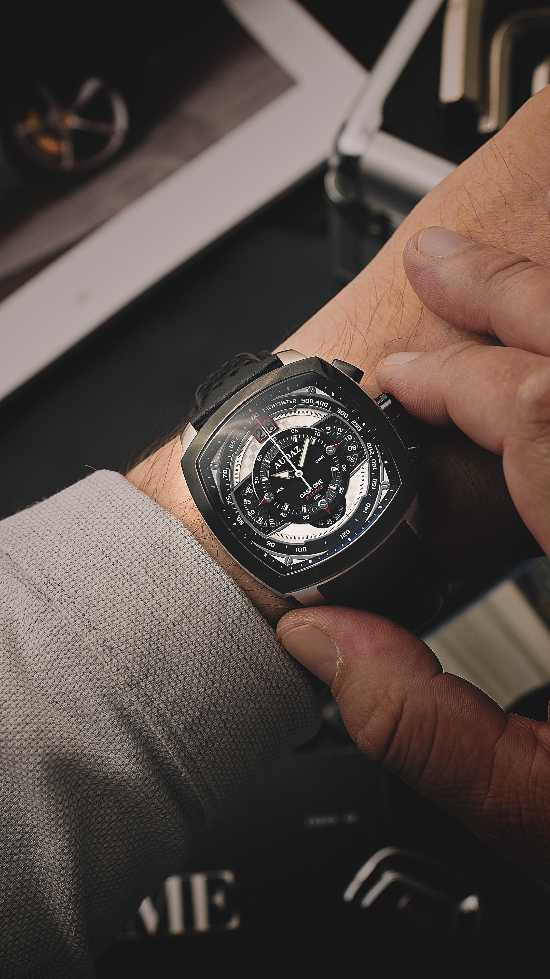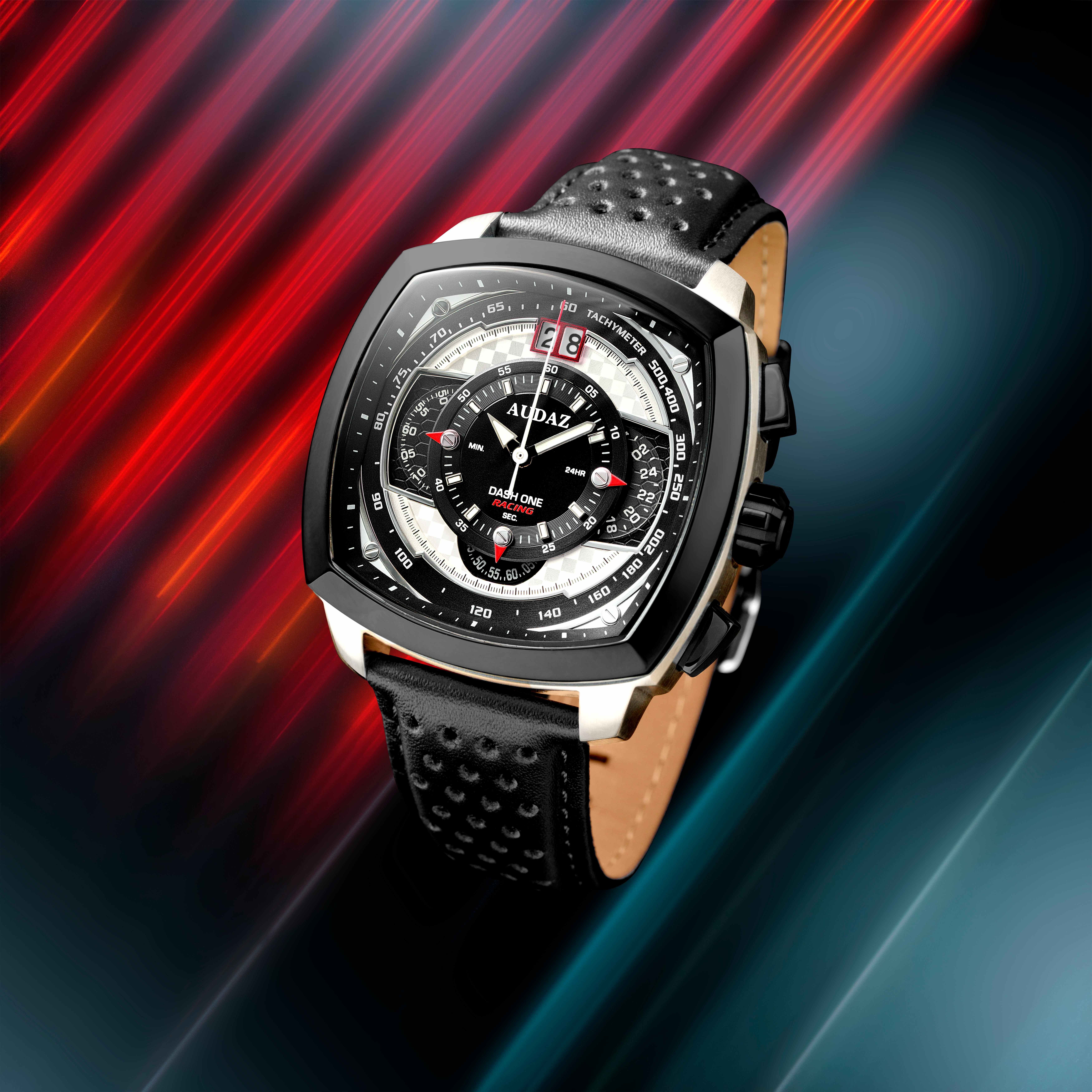 The Dash One Chronograph emerges as an essential timepiece for motorsport enthusiasts. Drawing inspiration from the automotive world, this watch masterfully blends meticulous details with vibrant colors, capturing the essence of speed and performance. Built to withstand the demands of an active lifestyle, its robust construction ensures durability, making it an ideal choice for those who live life in the fast lane.