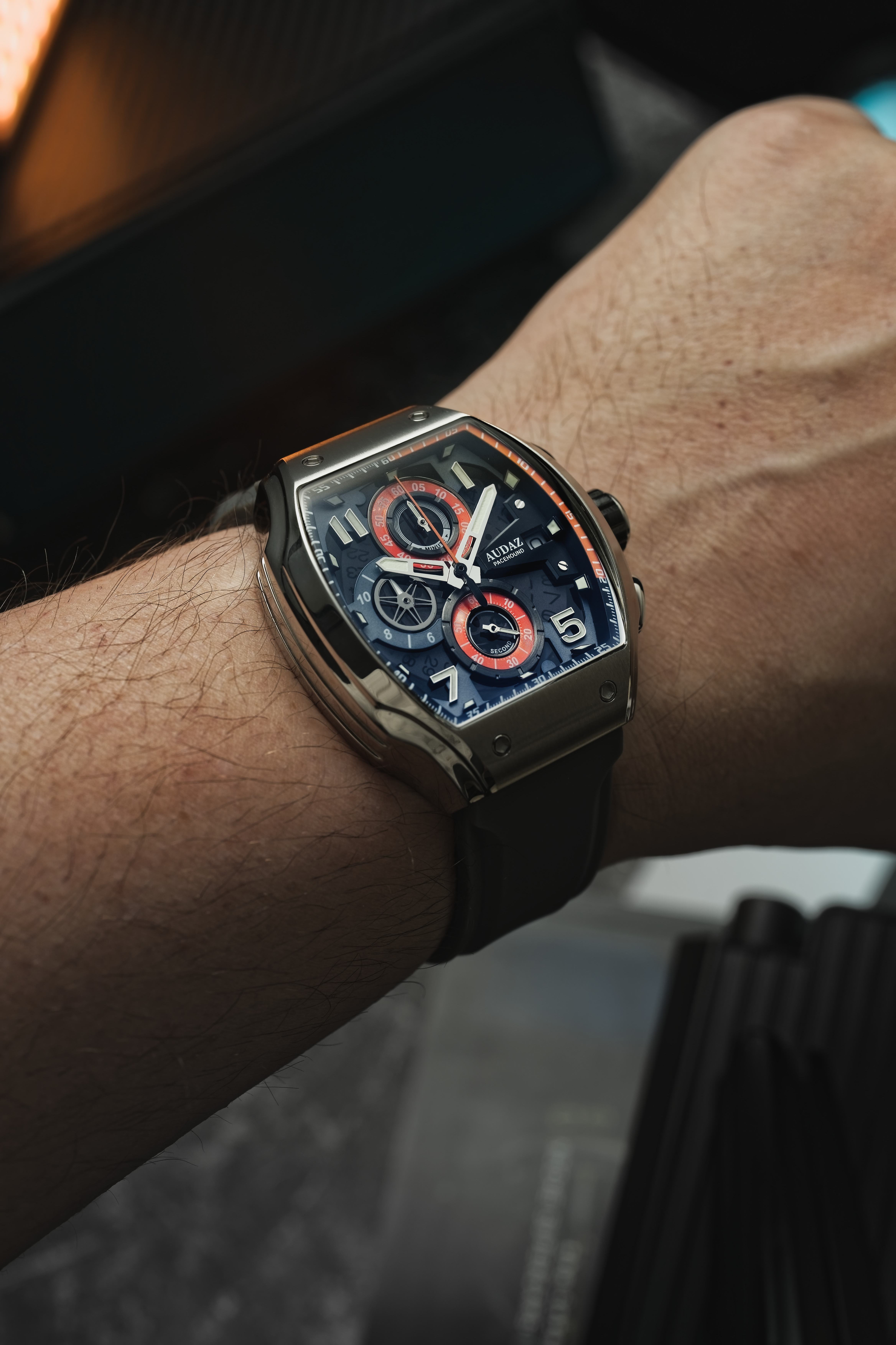 Built to Race. Explore the daring Pacehound Chrono Series by Audaz, crafted for speed enthusiasts. These timepieces blend sporty and bold designs, epitomizing strength, speed, and style. Each watch features unique aesthetics, guaranteeing sophistication and attention, making them perfect for those who seek both performance and style in their everyday attire