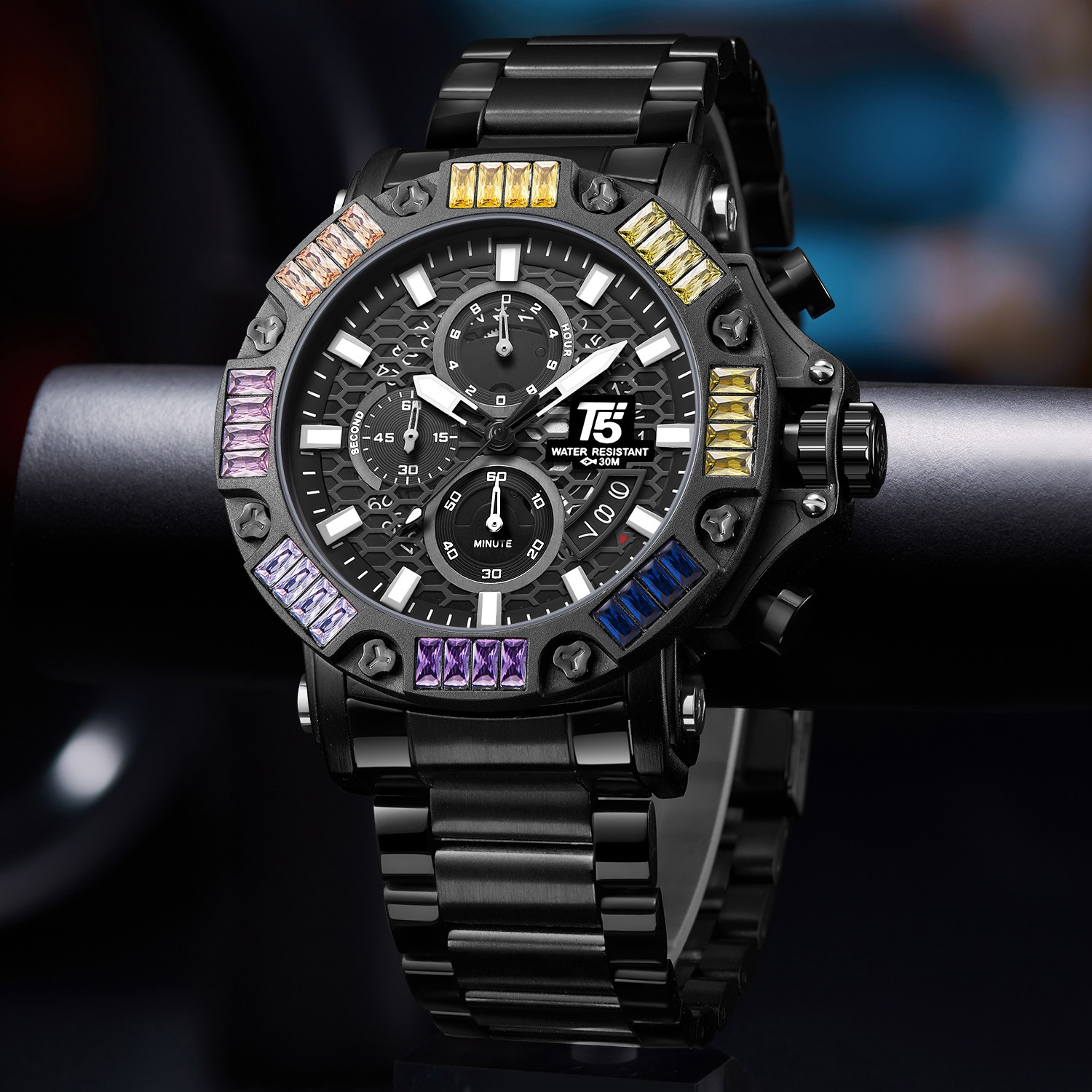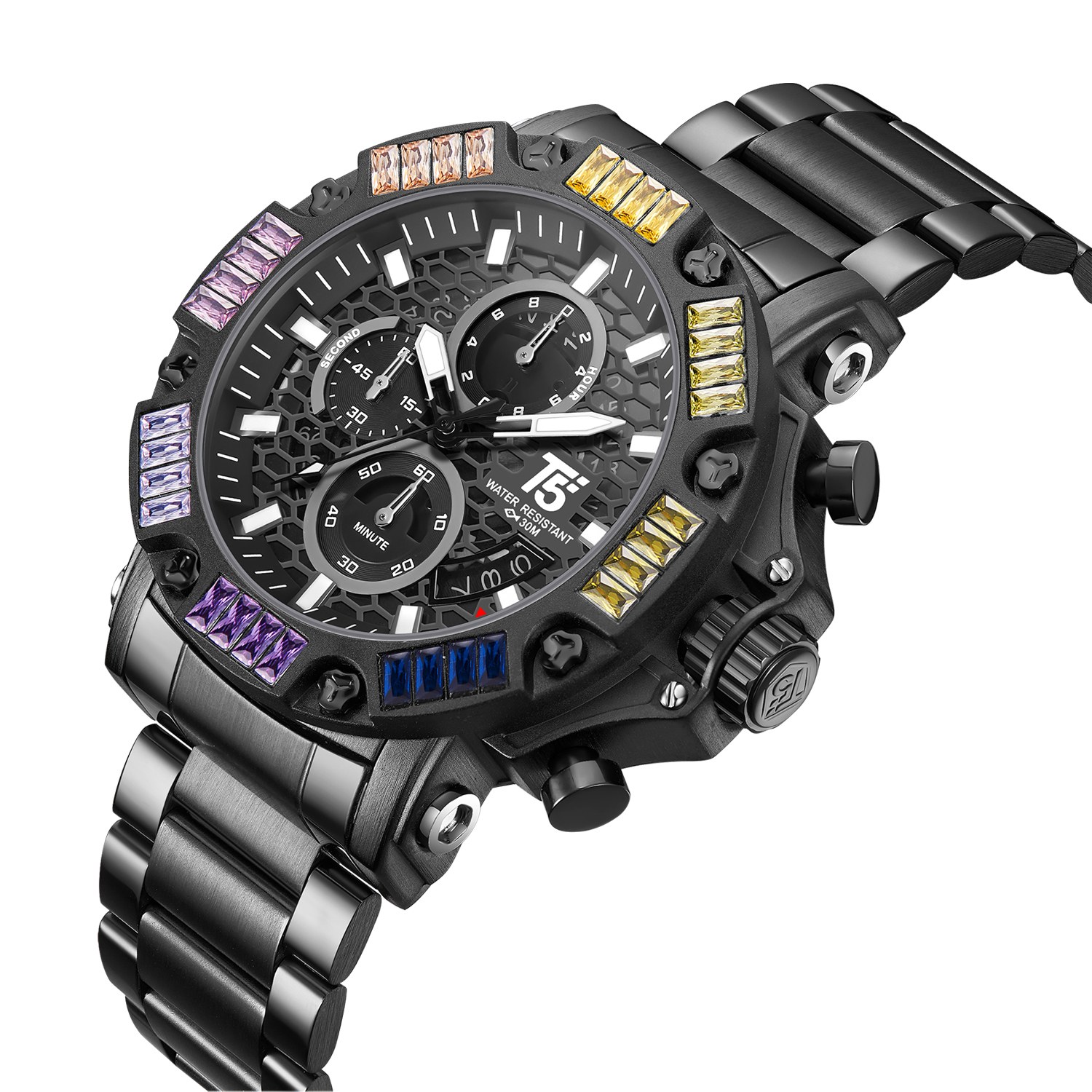 With a 47mm round alloy case and stainless steel strap, the T5 H3884G offers timeless style. Its quartz movement, mineral glass, and 30m water resistance make it a dependable accessory. Elevate your look with a watch that radiates class and sophistication.