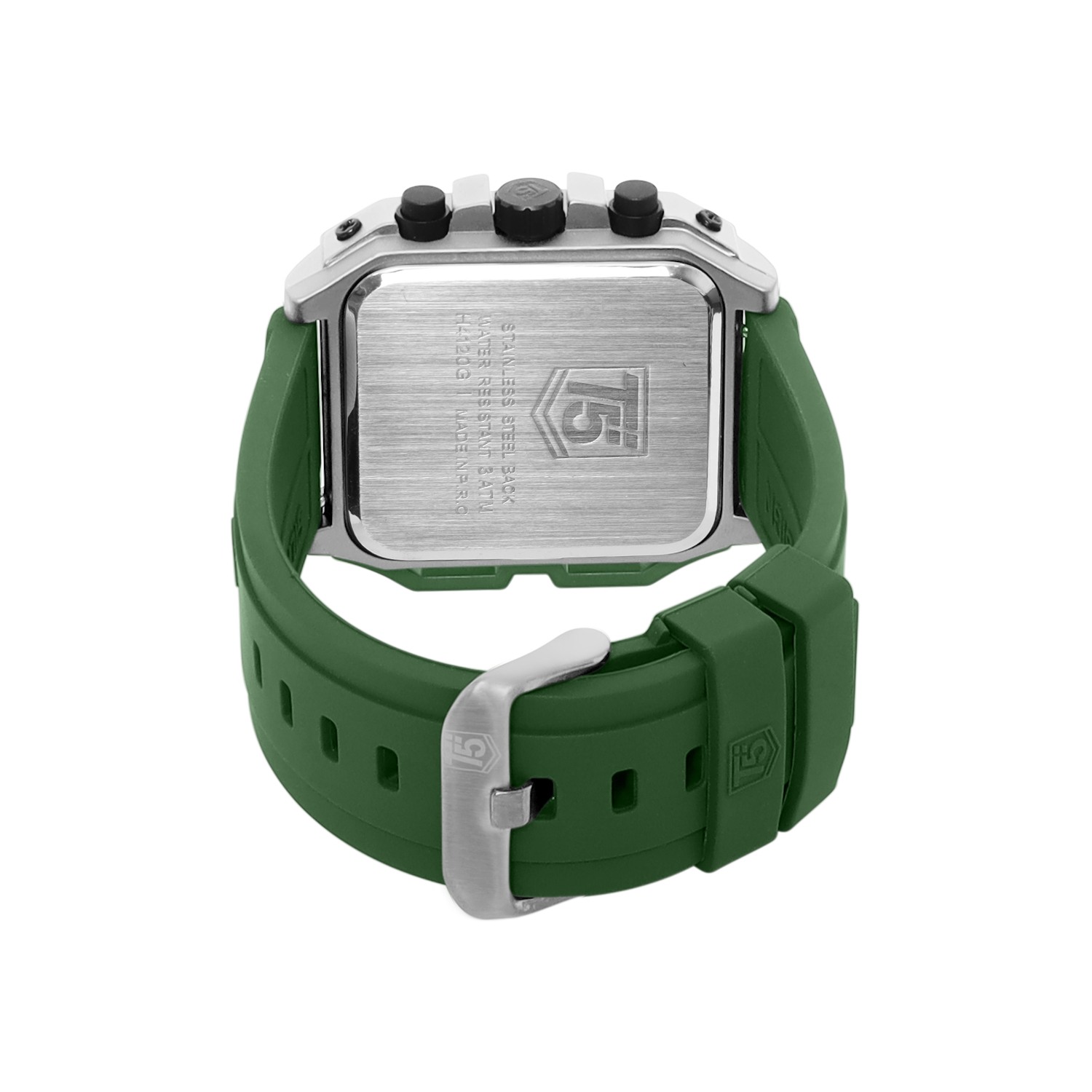 The T5 H4120G-C is designed for sleek minimalists. Its all-green color scheme, rectangular alloy case, and silicon strap give it a stealth-luxe look. With a 46mm face, 14mm thickness, and durable mineral glass, this watch is perfect for those who appreciate subtle power in every detail.