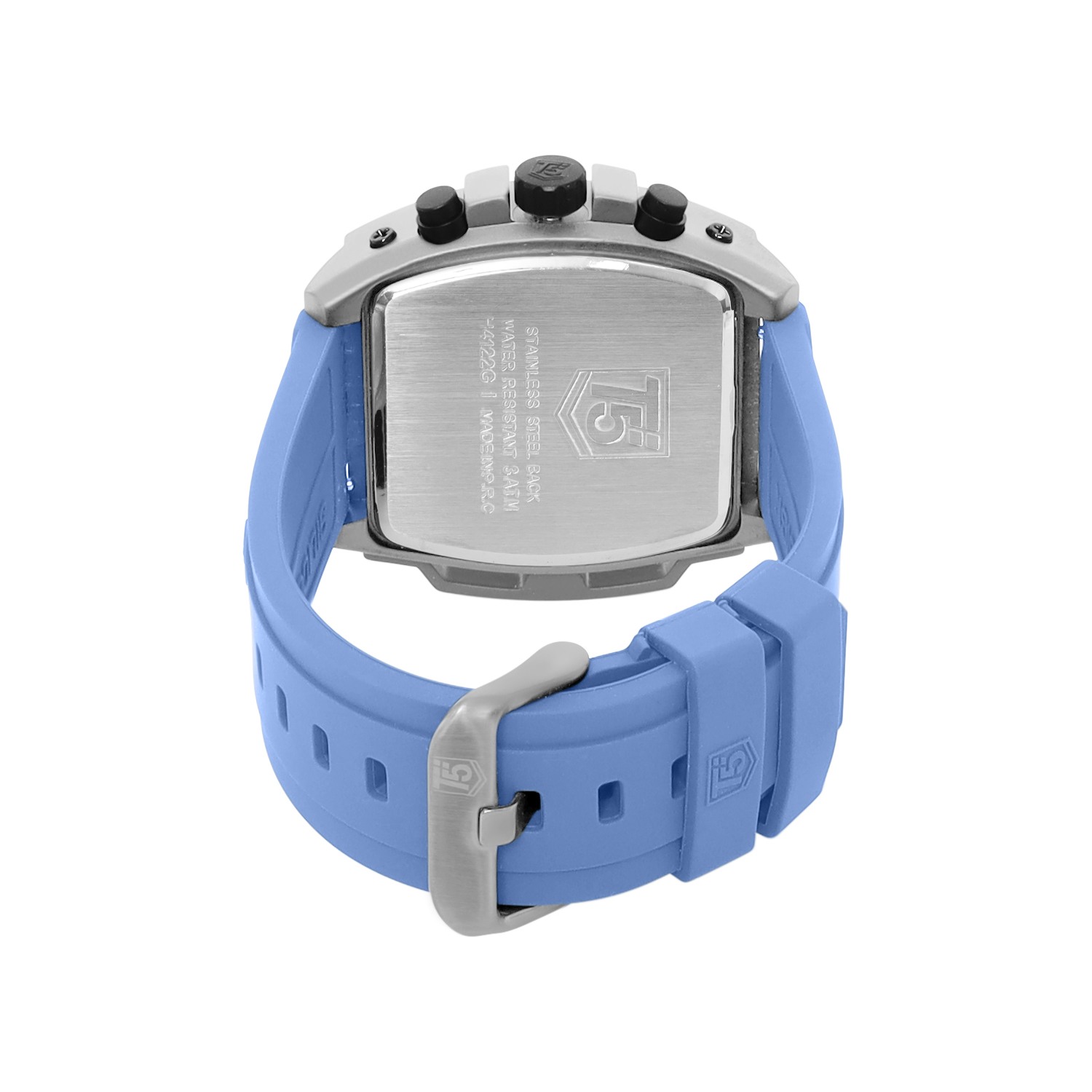 A sleek tonneau men's watch with a 45mm alloy case, blue dial, and blue silicon strap. Equipped with quartz movement, mineral glass, and 30m water resistance, it’s perfect for everyday wear.